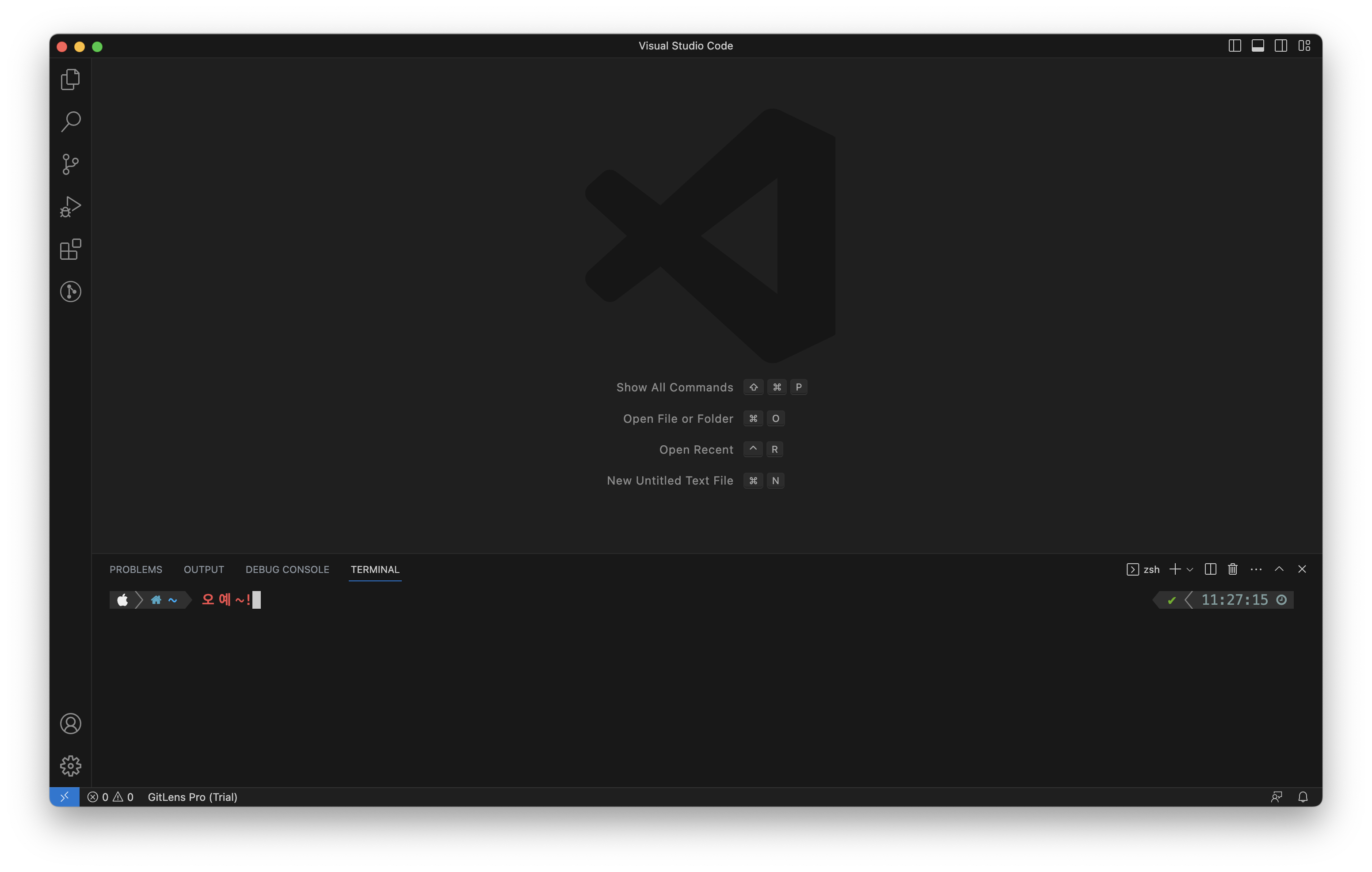 ^ + ⇧ + ` 커맨드를 눌러 터미널을 켜면?