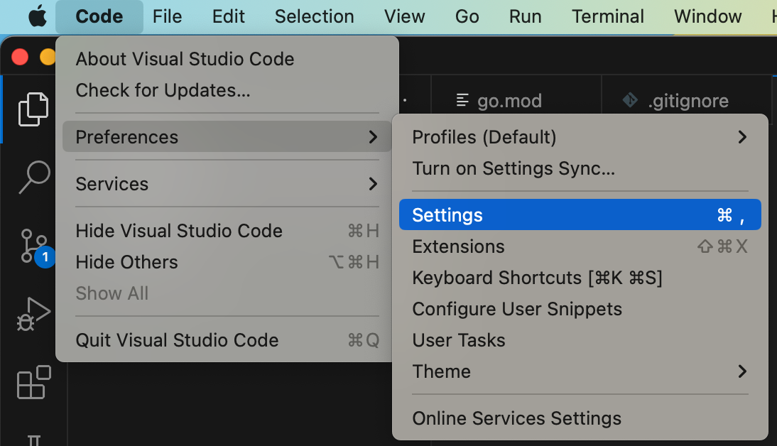 VSCode > 상태 바 좌측 Code > Preferences > Settings
