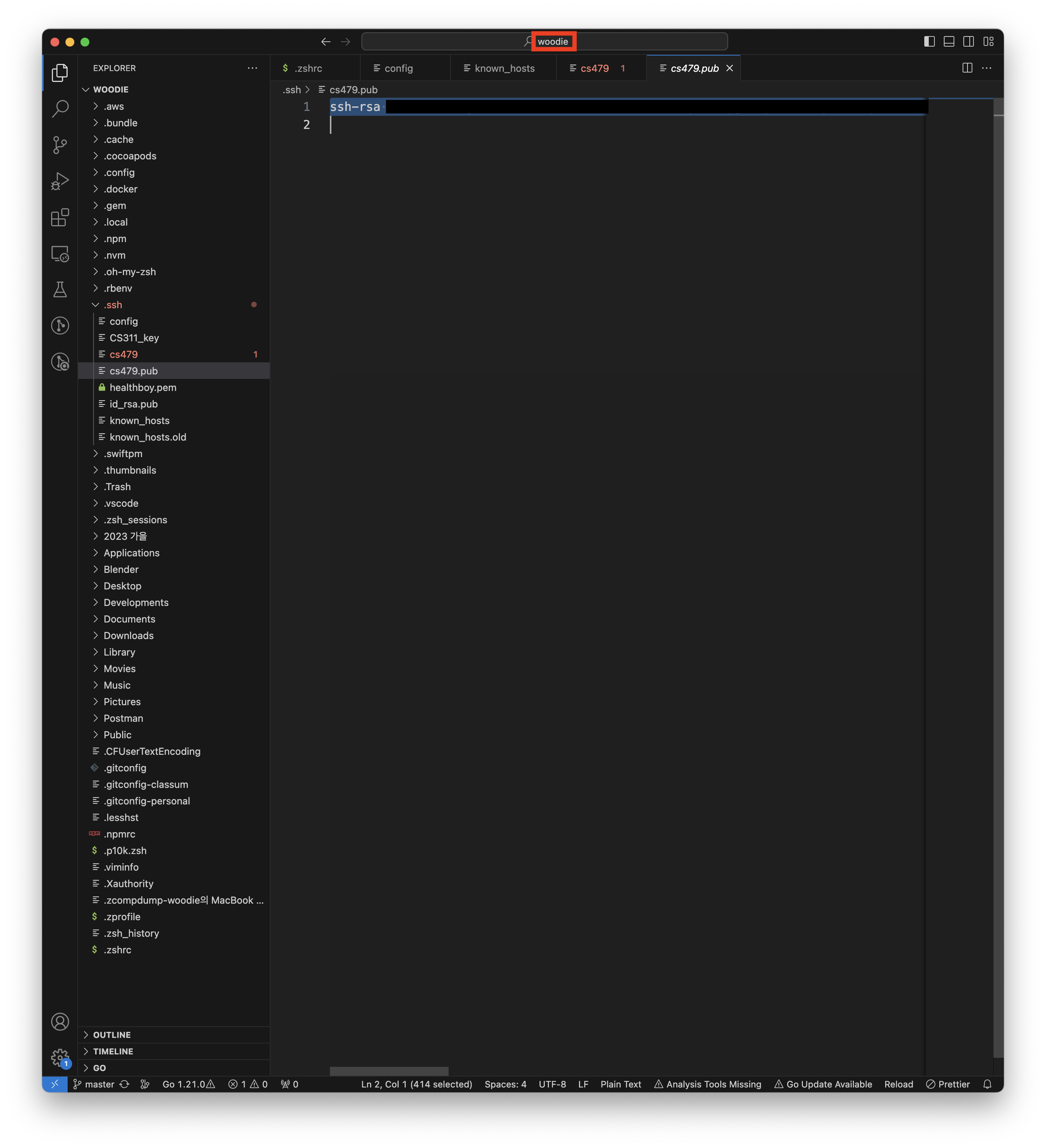 나는 ~/.ssh 디렉토리 안에서 SSH 접속과 관련한 모든 파일을 저장 중이기에 여기에 파일을 생성할 거다.